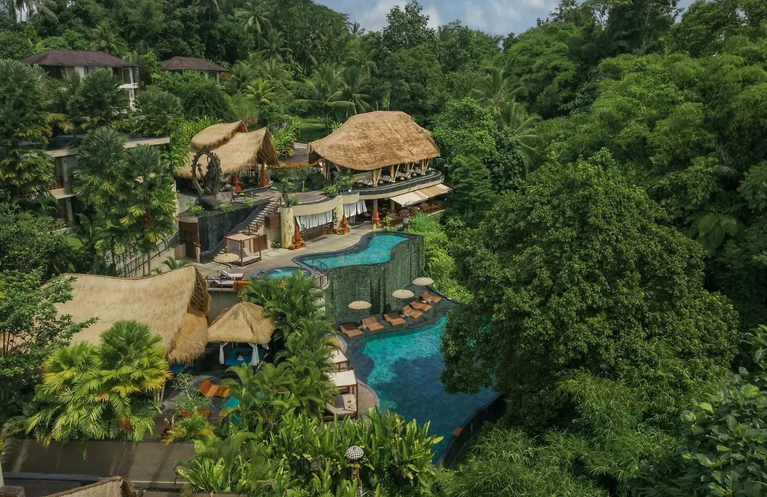 Это идеальное место для посещения достопримечательностей Тегаллаланга. Забронировали номер с видом на лес.